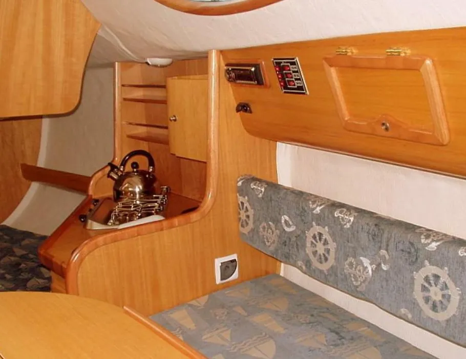 - instalacja wody pilnej (zbiornik 40 l) w kambuzie i WC